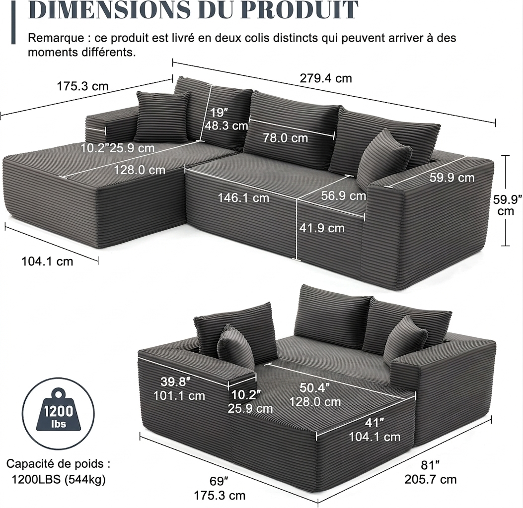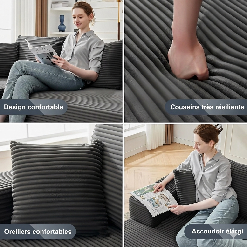 This L-shaped sectional features deep seats, ultra-soft corduroy upholstery, and a boneless, floating design for a modern, cozy look.