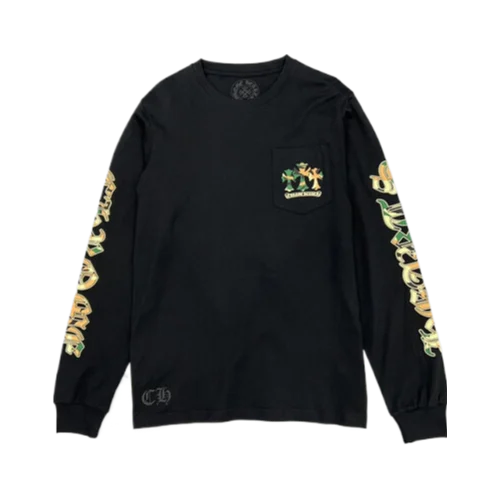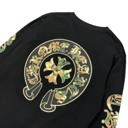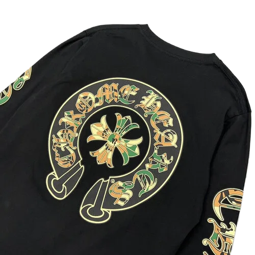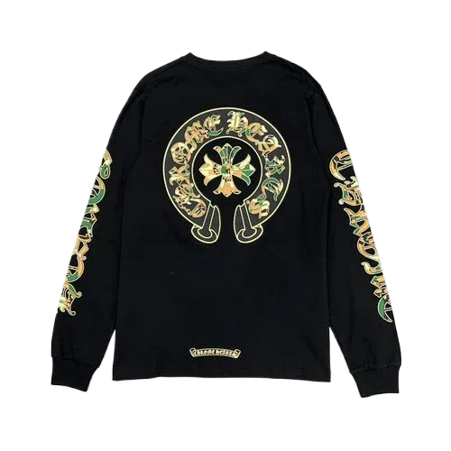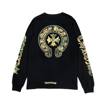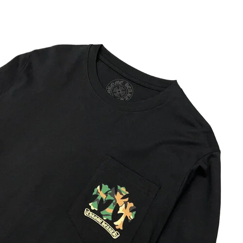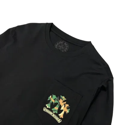 The Chrome Hearts Camo Crosses Black Long Sleeve T-Shirt is designed for versatility, seamlessly transitioning from day to night. Pair it with jeans and sneakers for a laid-back look or dress it up with tailored trousers and boots for a more polished ensemble. This shirt is perfect for those who appreciate high fashion with an edge, making it an essential piece for any fashion enthusiast.