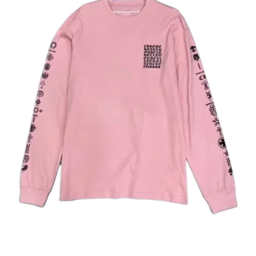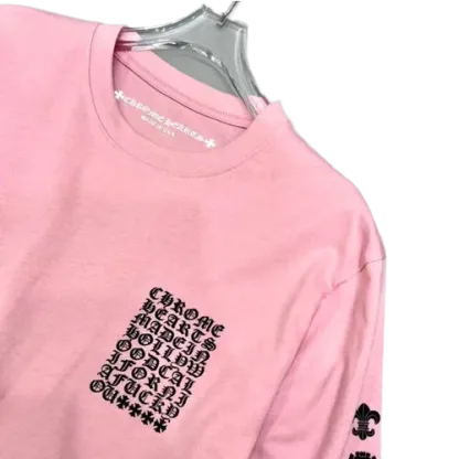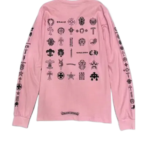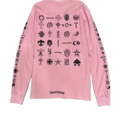 The Chrome Hearts Different Logo Pink Long Sleeve Tee is versatile enough to be styled in various ways. Pair it with jeans for a casual look, or dress it up with tailored trousers for a more refined ensemble. Its long sleeves make it perfect for layering, allowing you to transition effortlessly from season to season.