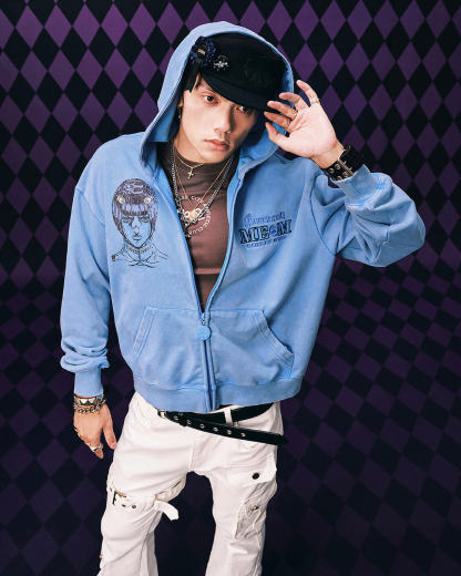 JOJO Washed Graphic Print Zip Up Hoodie
