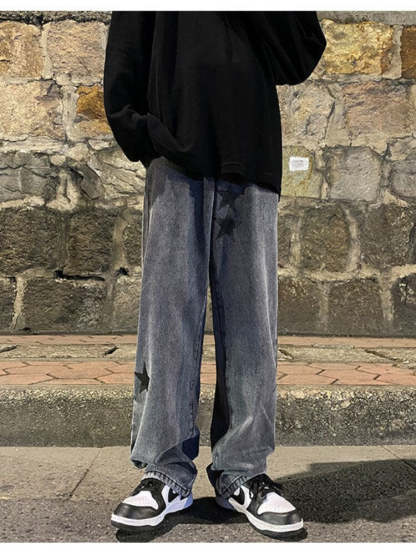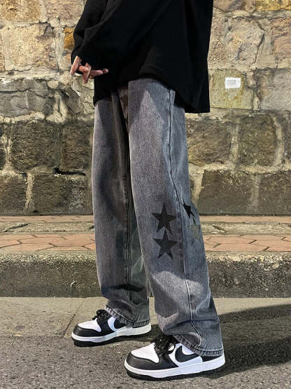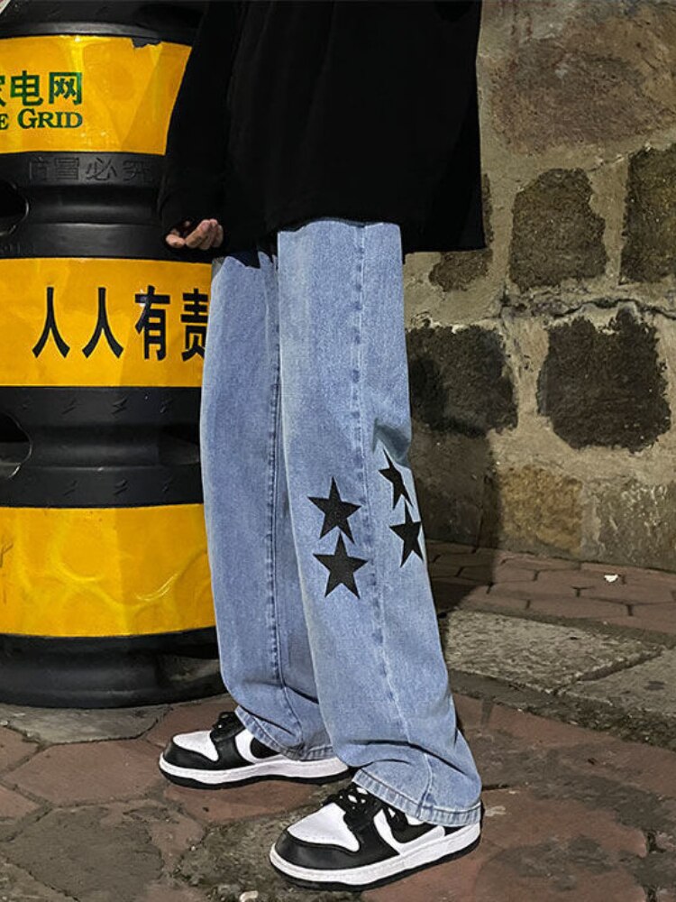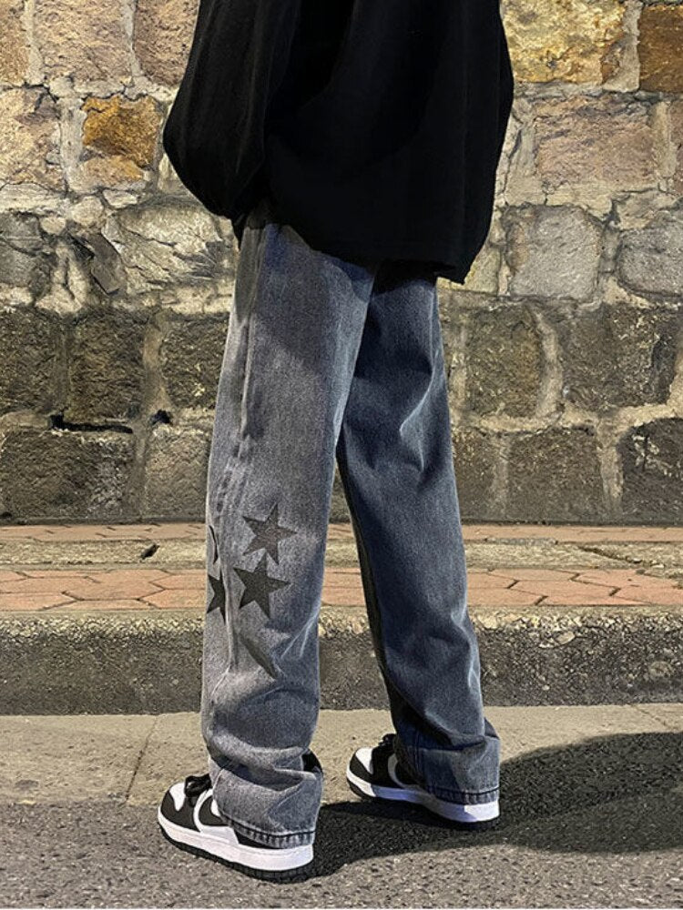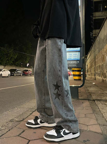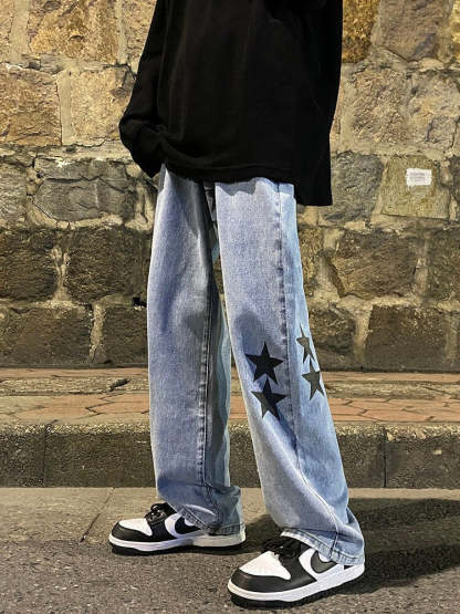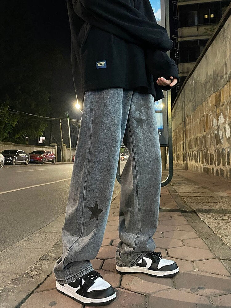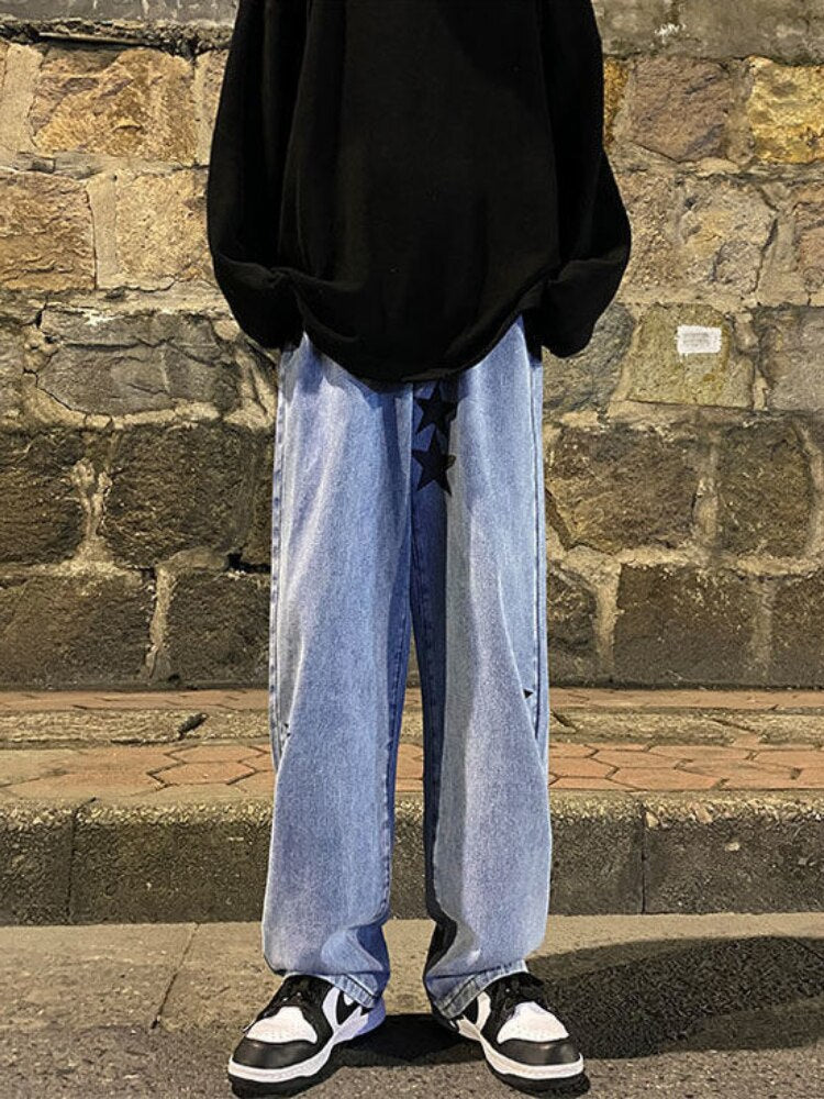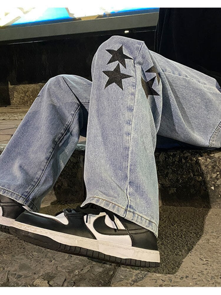 Star Print Oversized Denim Pants