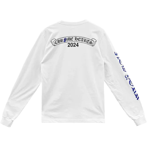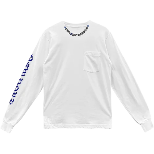 Crafted from premium cotton, this long-sleeve t-shirt ensures maximum comfort and durability while maintaining its bold aesthetic. The standout feature is the unmistakable Rolling Stones blue tongue graphic, enhanced with Chrome Hearts’ signature gothic lettering and intricate designs. This unique collaboration brings a fresh twist to an iconic symbol, blending music heritage with streetwear elegance.