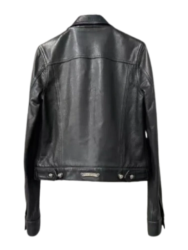 Chrome Hearts Leather Jacket Black Shirt Collar