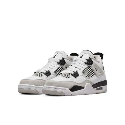Experience classic style and modern performance with the Air Jordan 4 Retro GS 'Military Black' for grade schoolers. Released in May of 2022, this retro shoe will add a vintage touch to your look, yet keeps up with the ever-changing trends with its muted color palette and breathable design. It features a white sole and base combined with suede and leather overlays as well as mesh side panels that provide plenty of support for every activity. This is a must-have accessory for classic style lovers who want to stay on top of the trend game. Step into the Air Jordan 4 Retro GS ‘Military Black’ to look cool while still feeling comfortable.