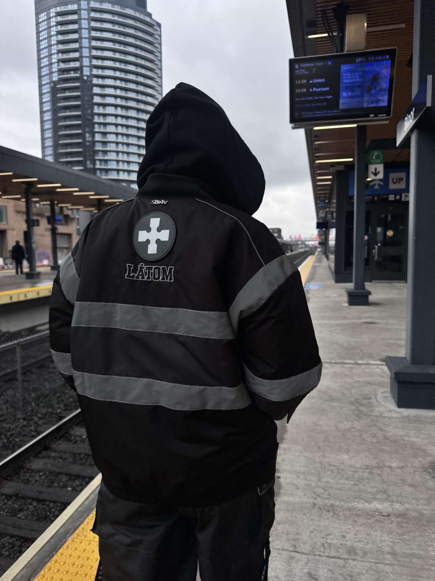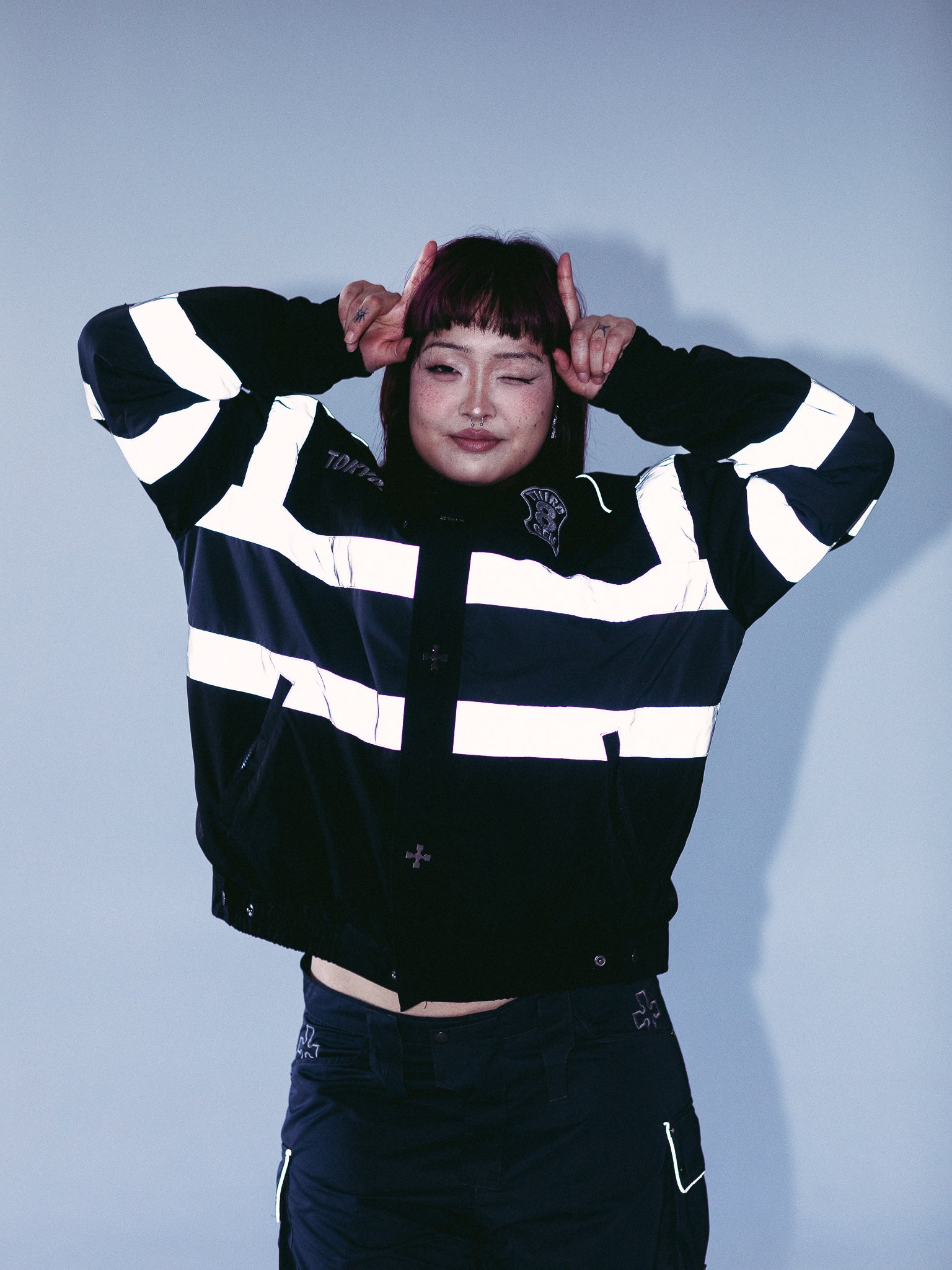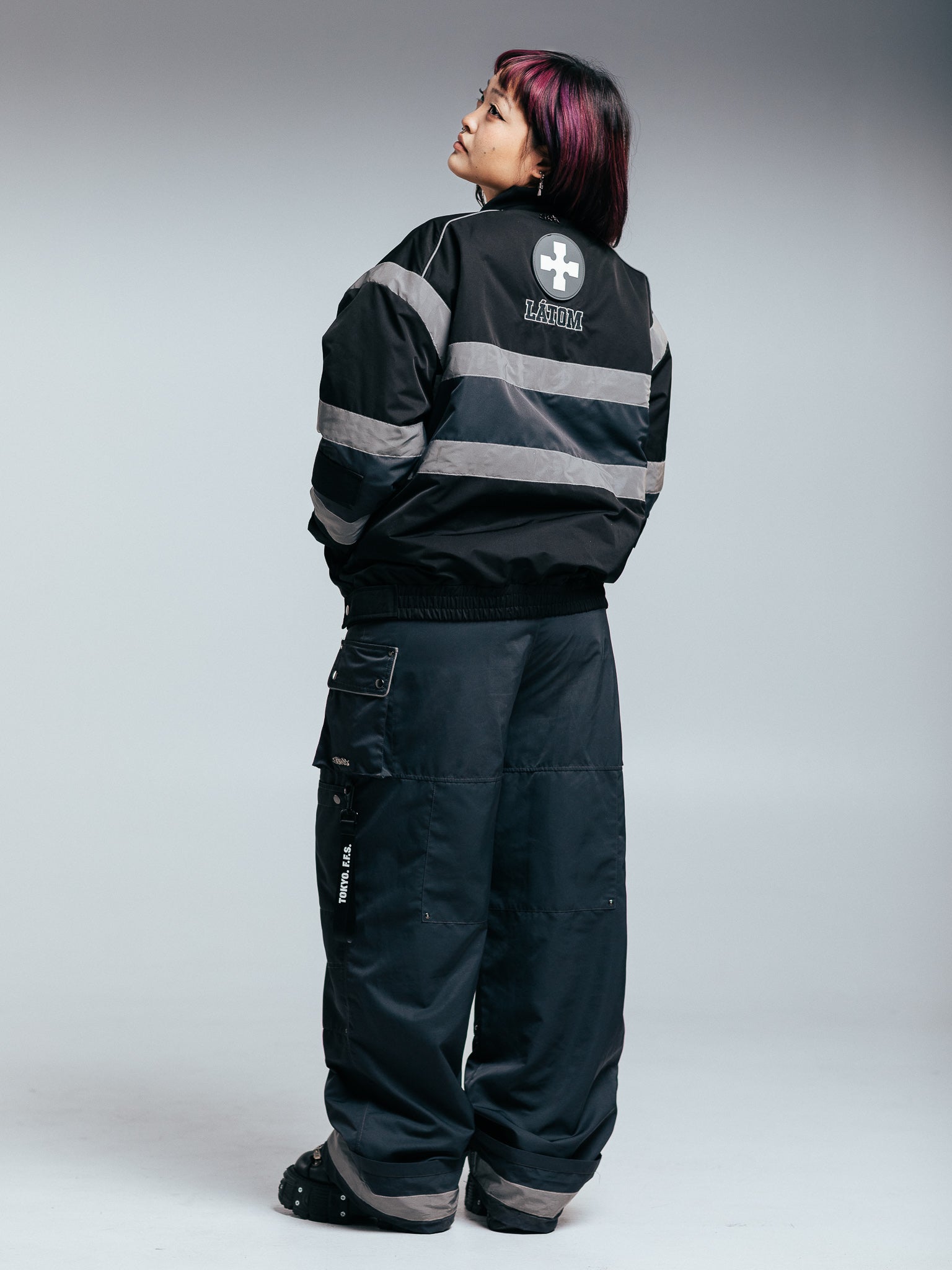 Heavyweight winter insulated jacket with embroideries on the front, back, and sleeves and a rubber patch on the back. This Jacket is made of 100% Polyester. Soft and comfortable, warm and breathable. Reflective lines reflect light and glow in the dark. Comes with backpack straps on the inside.