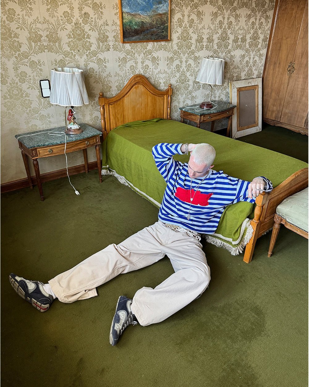 White & navy color stripes all over.