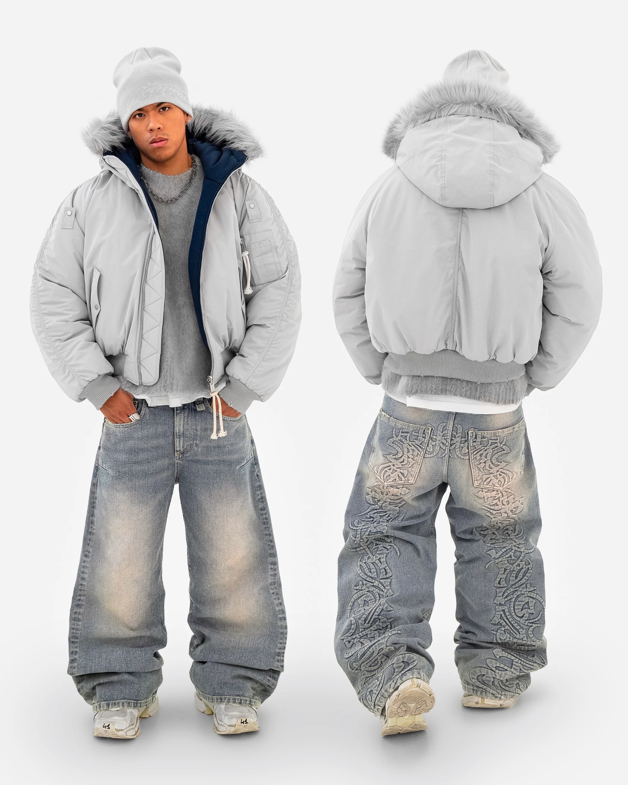 - Removable zipped fur.