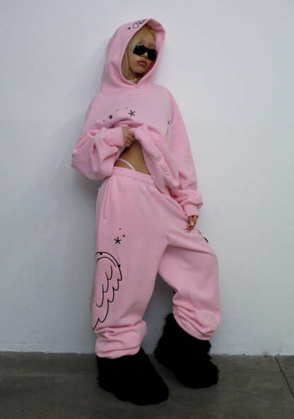 STITCH WINGS OVERSIZED SWEATPANTS BABY PINK (DETACHABLE WINGS)