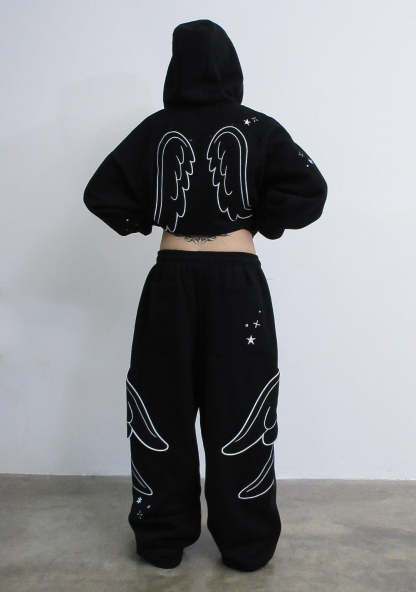 STITCH WINGS OVERSIZED SWEATPANTS BLACK (DETACHABLE WINGS)