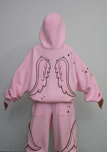STITCH WINGS PULLOVER HOODIE BABY PINK (DETACHABLE WINGS)